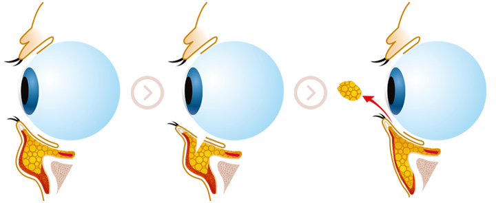 눈밑 지방제거는 눈속 결막을 레이저 혹은 고주파로 결막을 열고 지방을 제거하는 수술입니다.