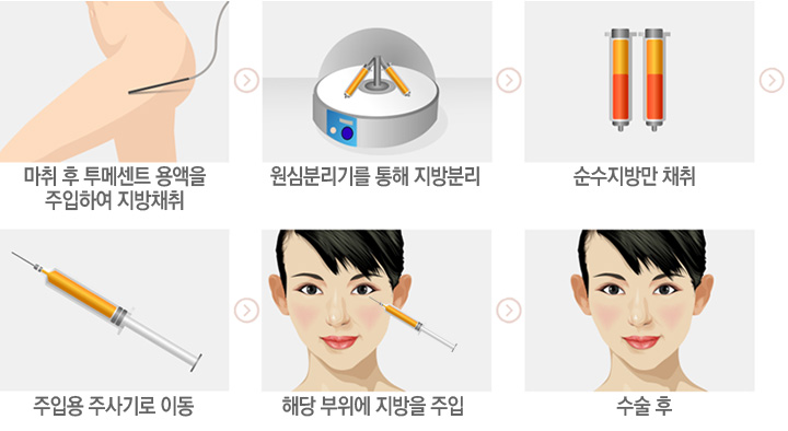 | 튀어나온 지방을 함몰된 근육밑 지방부위로 재배치시키는 수술입니다. | ||||||||||||||||||||
